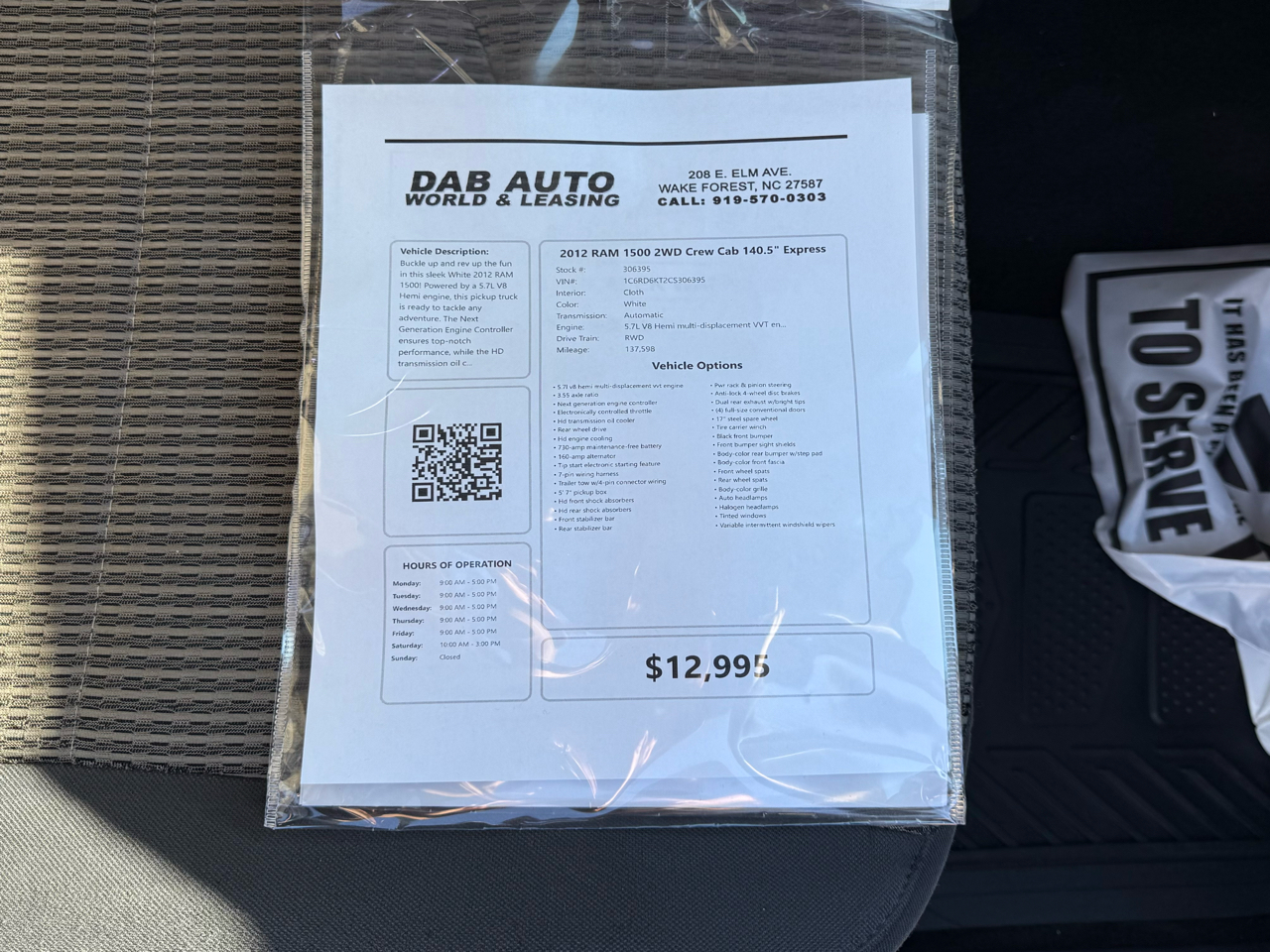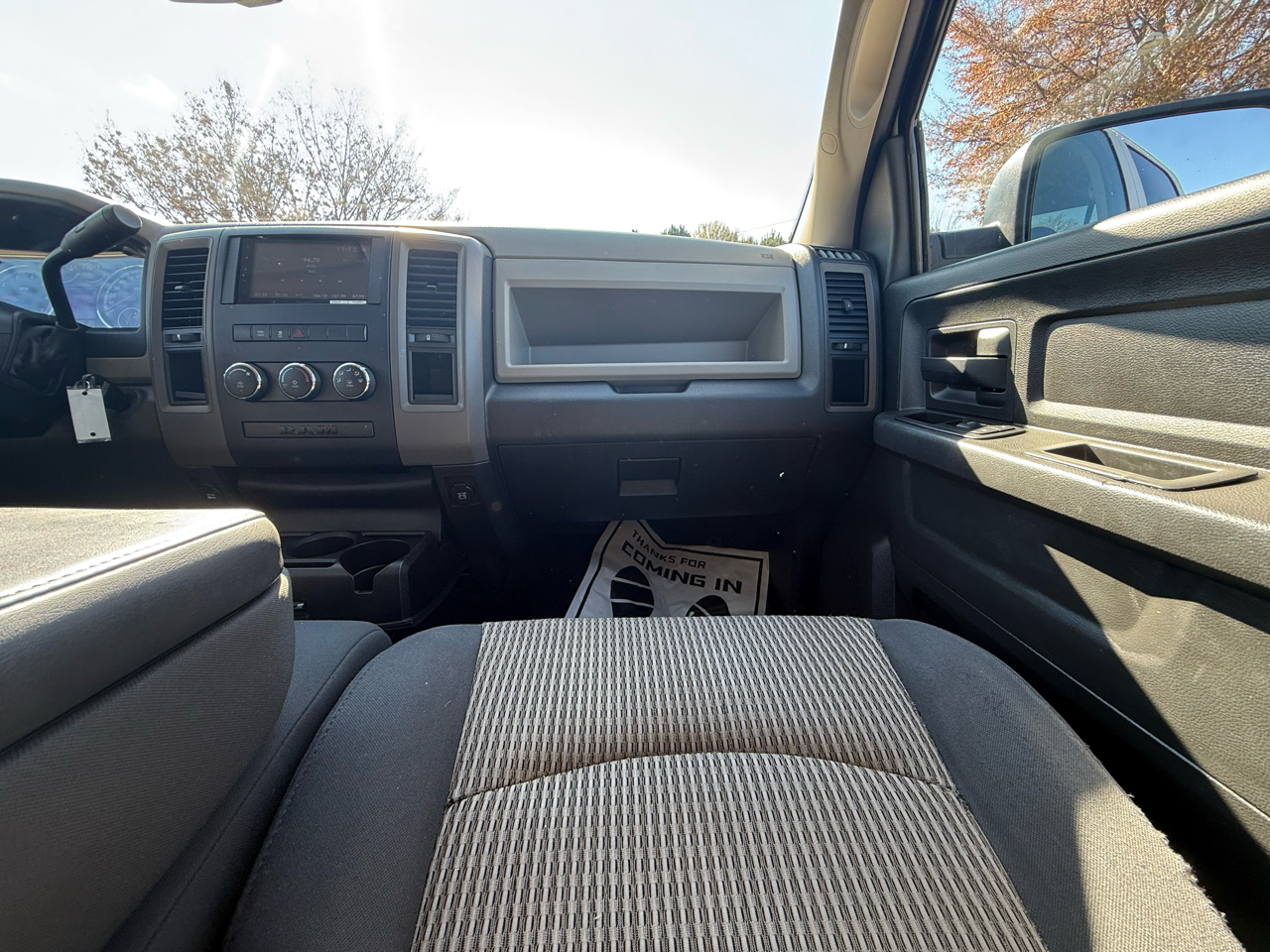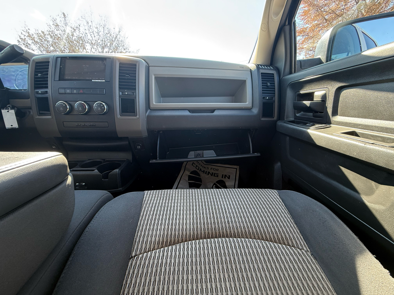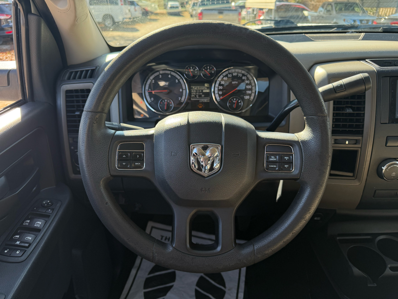 Buckle up and rev up the fun in this sleek White 2012 RAM 1500! Powered by a 5.7L V8 Hemi engine, this pickup truck is ready to tackle any adventure. The Next Generation Engine Controller ensures top-notch performance, while the HD transmission oil cooler keeps things running smoothly. The rear wheel drive and Pwr rack & pinion steering make handling a breeze, whether you're cruising down the highway or towing a trailer.Step inside to discover a comfortable cabin with Uconnect 130 entertainment system to keep you entertained on the go. With plenty of storage options including in-floor bins and under-seat compartments, you'll have space for all your gear. Safety features like Electronic Stability Control and front/rear side curtain airbags provide peace of mind for your travels.