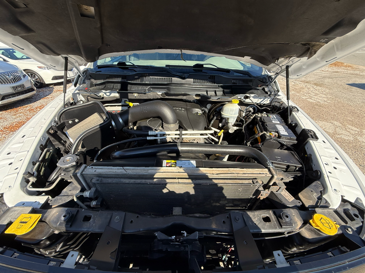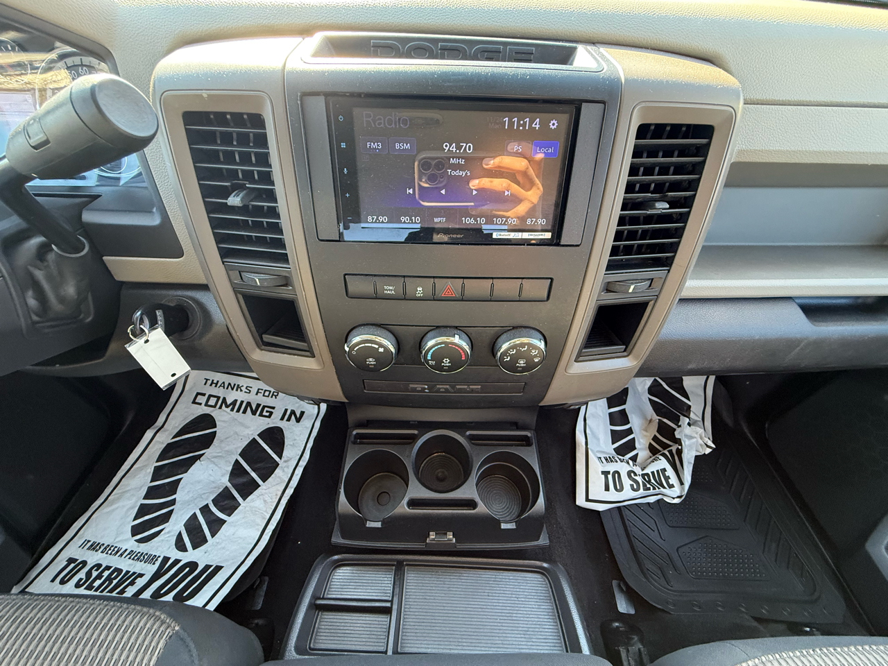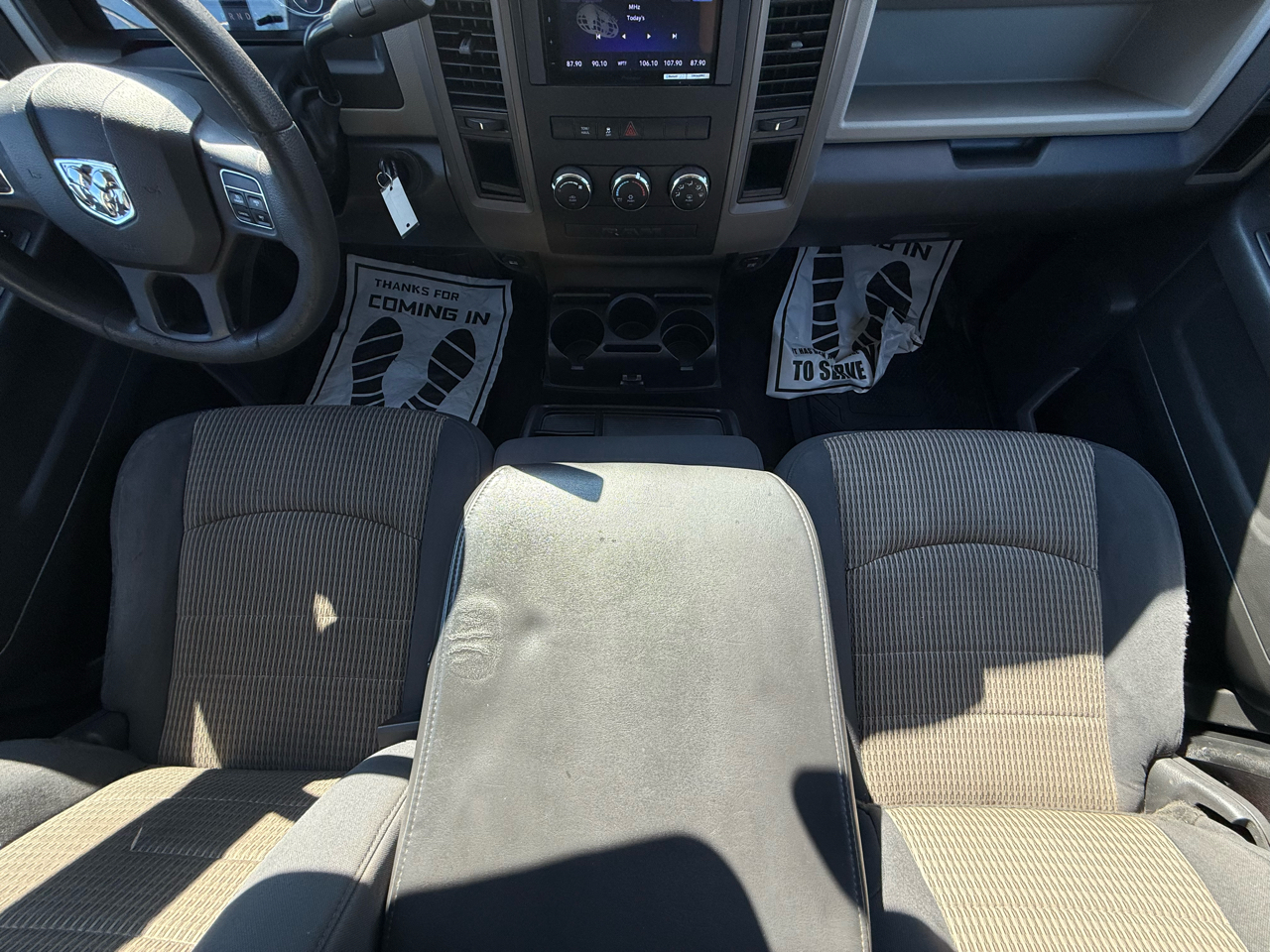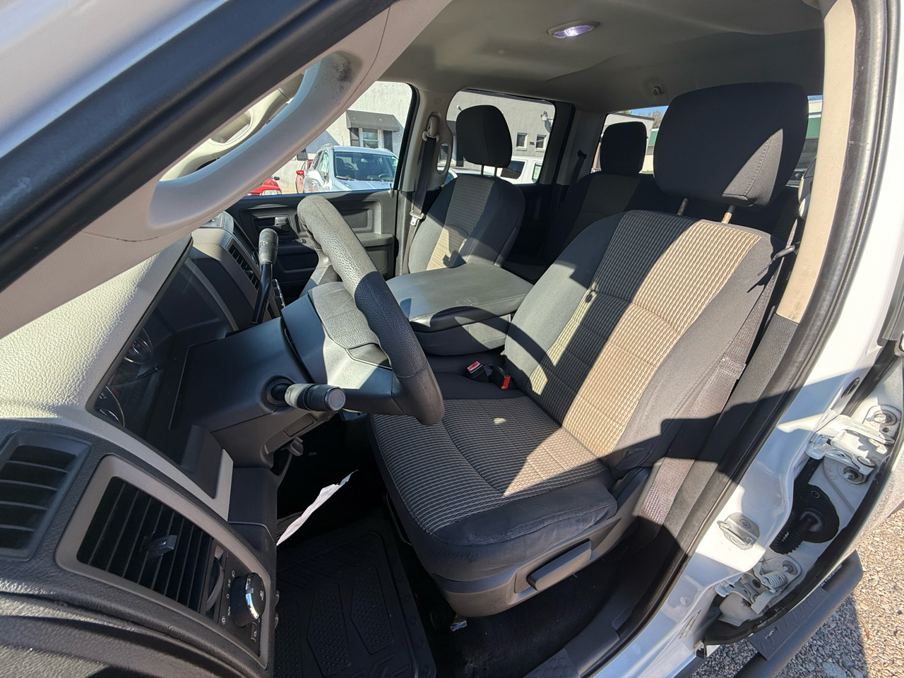 Buckle up and rev up the fun in this sleek White 2012 RAM 1500! Powered by a 5.7L V8 Hemi engine, this pickup truck is ready to tackle any adventure. The Next Generation Engine Controller ensures top-notch performance, while the HD transmission oil cooler keeps things running smoothly. The rear wheel drive and Pwr rack & pinion steering make handling a breeze, whether you're cruising down the highway or towing a trailer.Step inside to discover a comfortable cabin with Uconnect 130 entertainment system to keep you entertained on the go. With plenty of storage options including in-floor bins and under-seat compartments, you'll have space for all your gear. Safety features like Electronic Stability Control and front/rear side curtain airbags provide peace of mind for your travels.