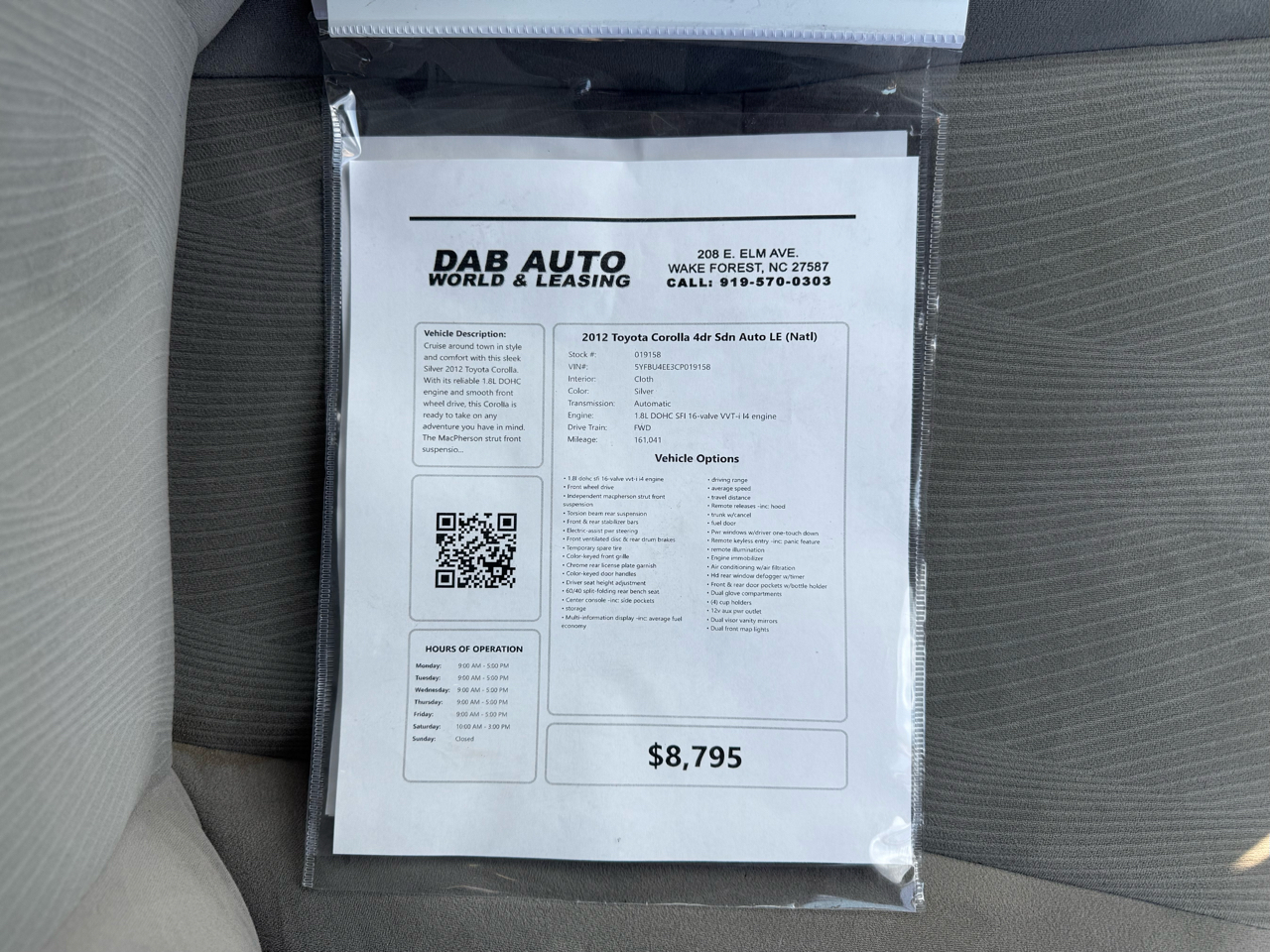 Visit DAB Auto World & Leasing online at dabautoworld.com to see more pictures of this vehicle or call us at 919-570-0303 today to schedule your test drive.